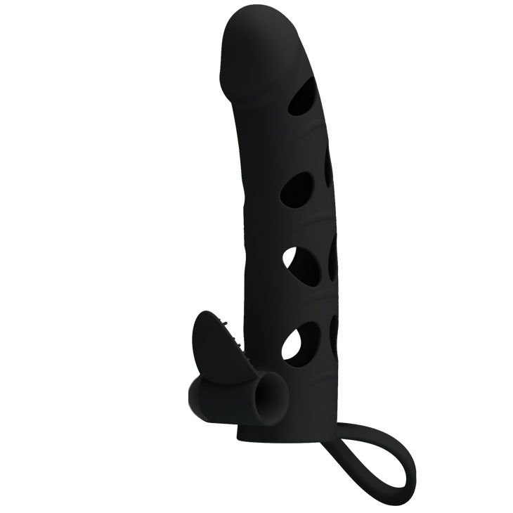 Насадка удлинитель с закрытой головкой, удлиняет член, с мягким кольцом под мошонку для задержки эякуляции и вибропулькой для пульсирующей стимуляции чувствительной женской зоны (клитора). Батарейки в комплекте. Прирост длины - 5,1 см. Минимальный внутренний диаметр - 2,5 см.