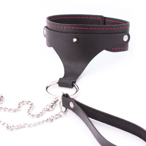 БДСМ-комплект: ошейник, распорка, наручники и оковы.Три точки фиксации. Шесть карабинов, кольцо, поводок. Выполнен из натуральной кожи. Длина распорки - 50 см.